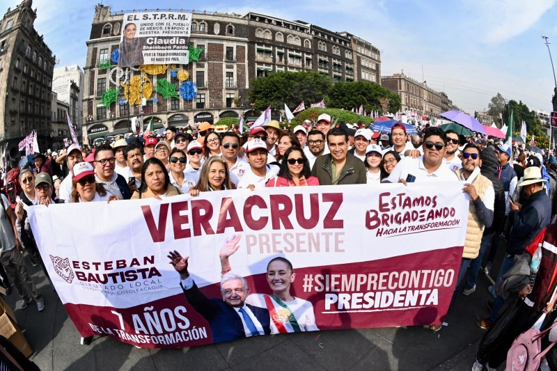 Al zócalo capitalino, el profesor Esteban Bautista acudió al frente de un importante contigente de personas del estado de Veracruz, principalmente de la región sur, quienes reiteraron su respaldo a la presidenta Claudia Sheinbaum Pardo.