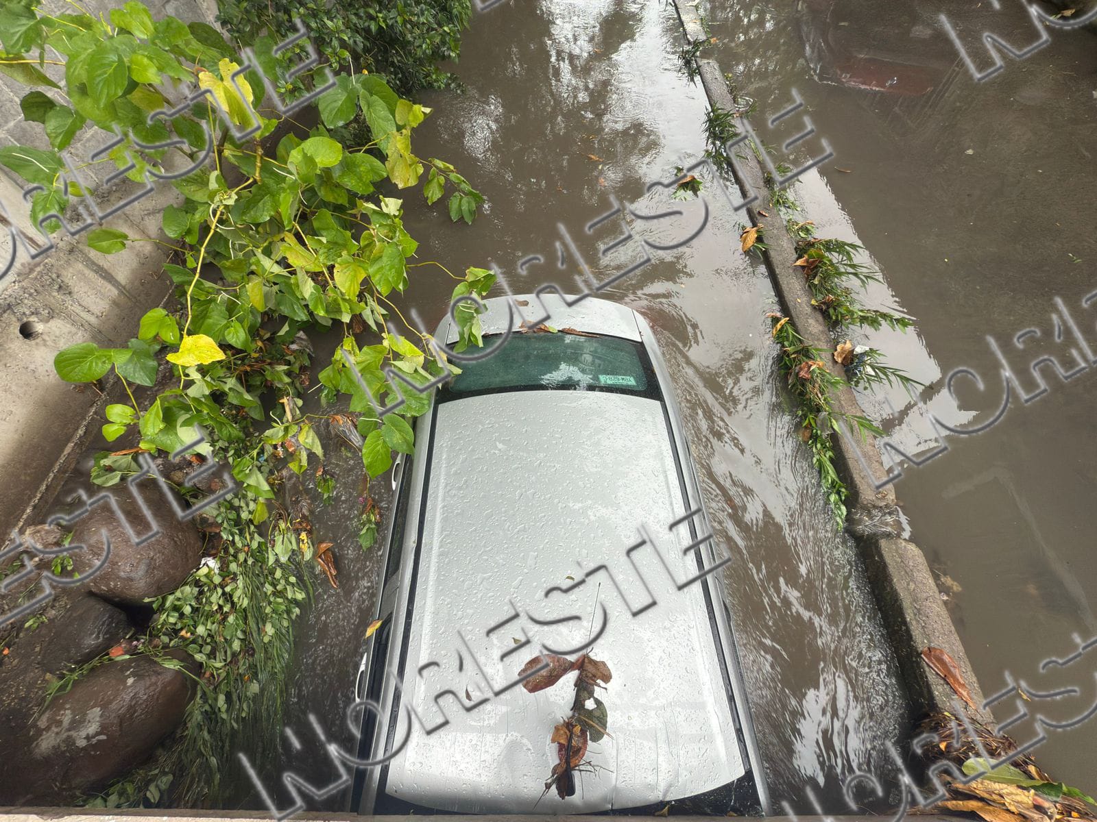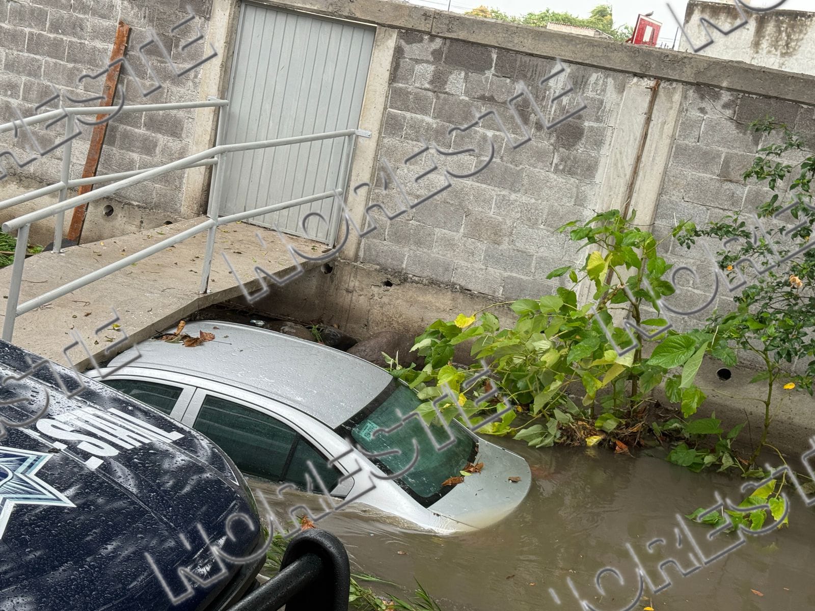 Fue en la calle Ursulo Galván, de la colonia Manantial, en donde el carro color plata fue arrastrado por la corriente al intentar dar una vuelta en u, sin embargo debido al nivel de la inundación, no se percató de la existencia del canal.