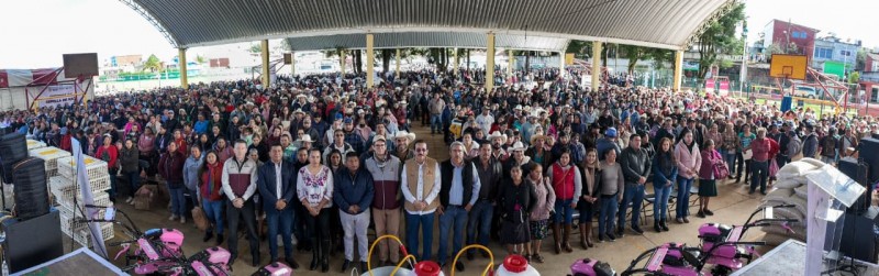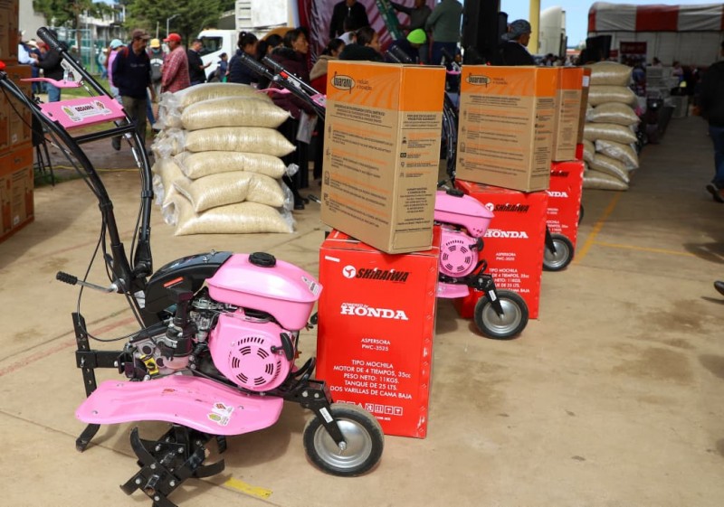 Los paquetes incluyen huertos de traspatio para mujeres campesinas, maíz de doble propósito, aspersoras manuales, motocultores, biofertilizantes, kits de malla sombra, kits de cultivo de café y de piloncillo, así como paquetes de aves de postura y otros implementos para reactivar las actividades productivas y mejorar las condiciones de los hogares rurales.