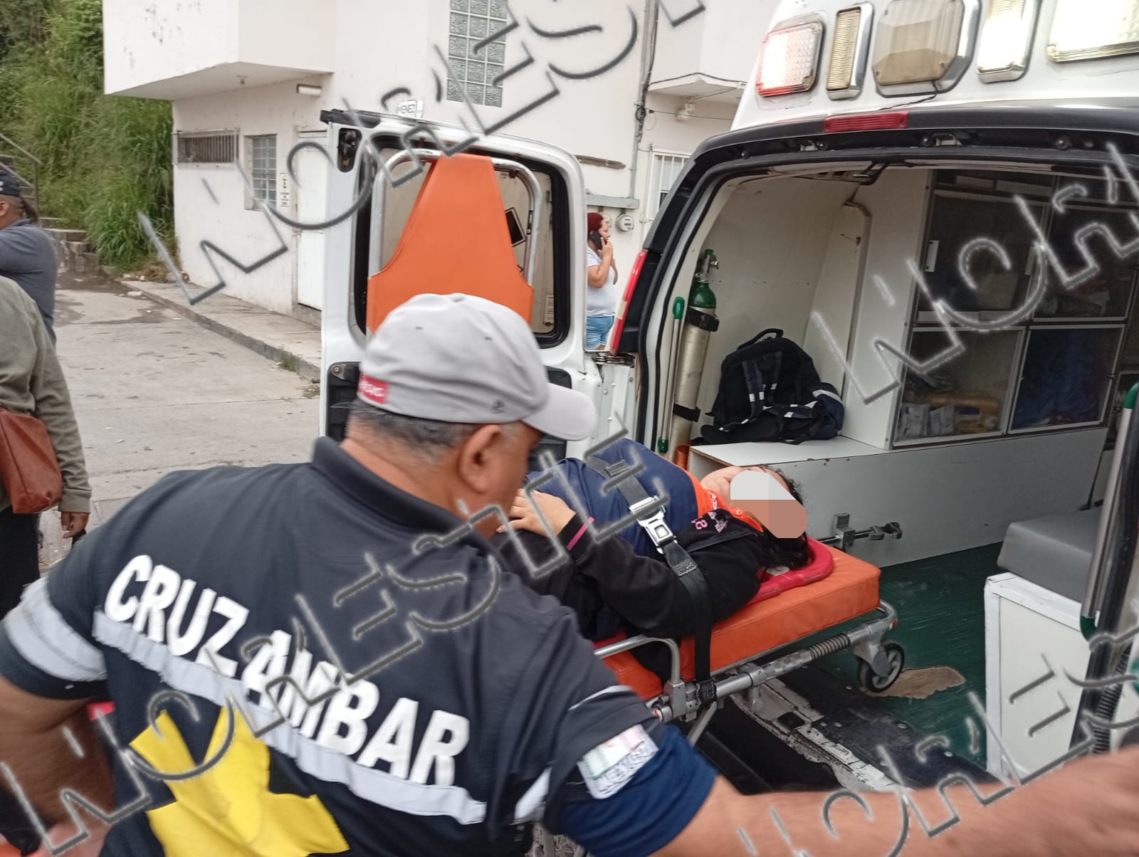 Paramédicos de Cruz Ámbar, que pasaban por la zona, brindaron los primeros auxilios a la lesionada, quien presentaba dolor generalizado y una probable fractura en una pierna, por lo que fue trasladada a la clínica del IMSS para recibir atención médica.