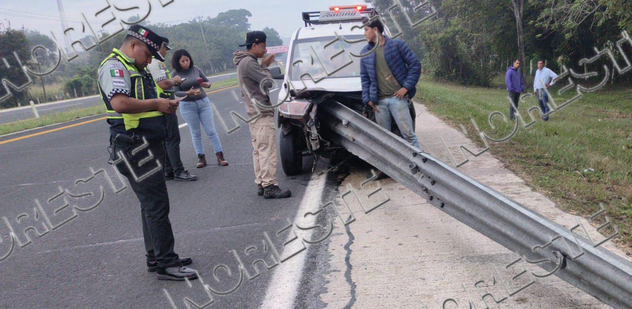 En este sitio una mujer de nombre Maricruz C. B., de 28 años, habitante de la colonia El Esfuerzo en Tuxpan, perdió el control de la unidad al salir de una curva, lo que provocó que la camioneta se proyectara directamente contra la estructura de protección vial.