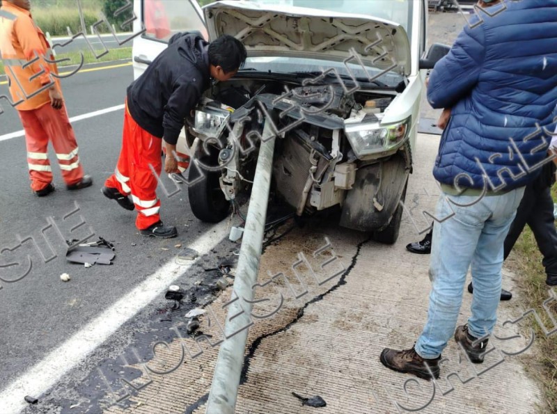 Esto luego de que una camioneta Tornado Van 2023, sin placas terminara atravesada por la barra metálica de contención.