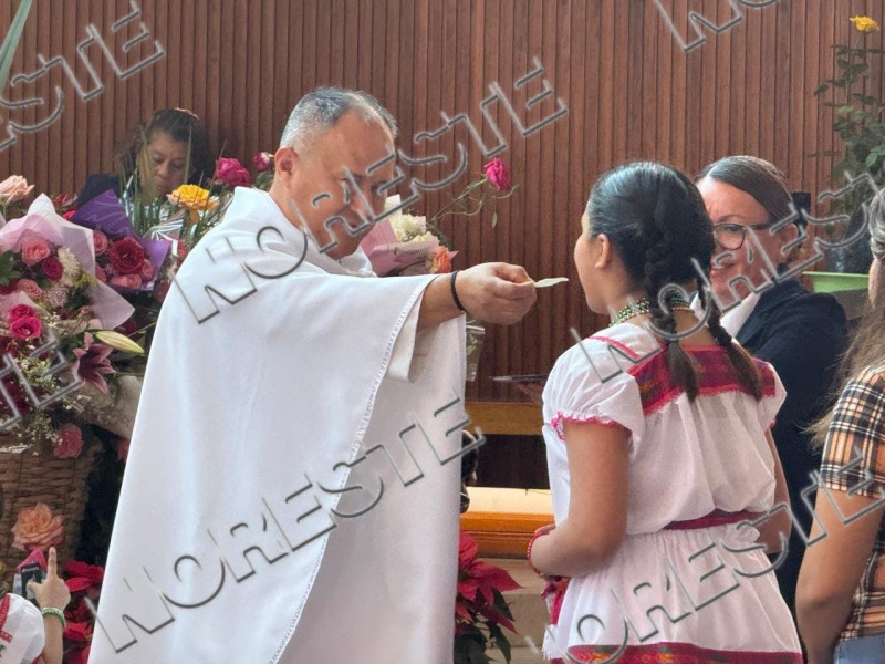 Entre sonrisas infantiles, abrazos sinceros y miradas llenas de fe, el templo se convirtió en el latido vivo del fervor guadalupano. El párroco de la iglesia realizó la bendición de niños y niñas, que acudieron luciendo sus indumentarias de Juan Diego e inditas.