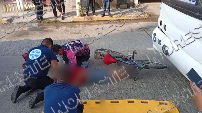 Un hombre de edad avanzada que se desplazaba en una bicicleta terminó con diversas lesiones luego de ser embestido por un autobús de transporte público, lo que obligó a su traslado urgente a un hospital.