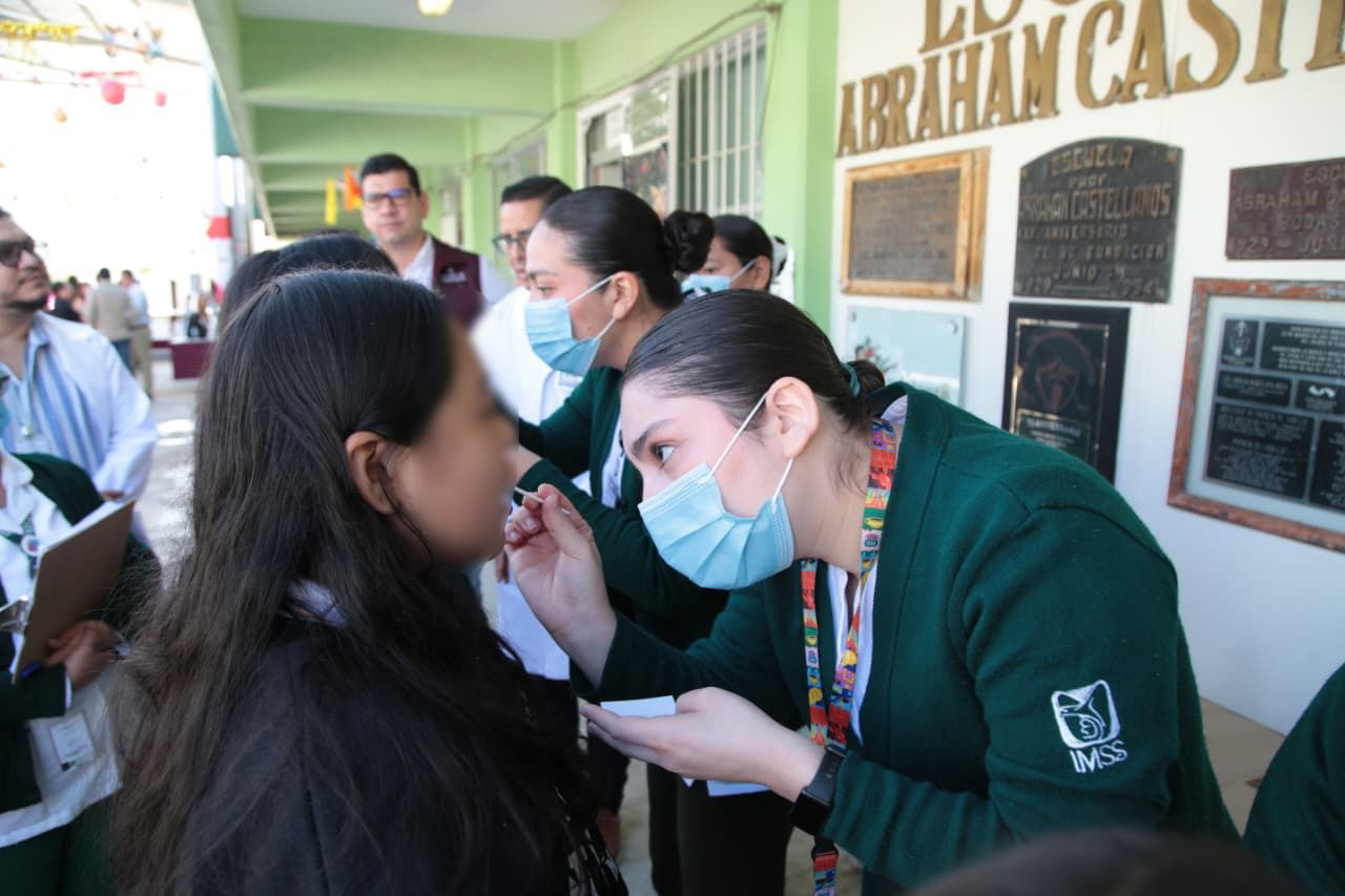 Recordó que esta iniciativa federal cuenta con el apoyo de profesionales de diferentes órdenes de gobierno: la Secretaría de Salud, IMSS, IMSS-Bienestar, DIF, Becas Bienestar y el Consejo Nacional de Fomento Educativo, para contar con los diagnósticos de peso, talla, agudeza visual y salud bucal de las y los alumnos, así como hacer promoción de la salud.