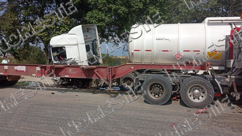 El percance ocurrió en la vía que enlaza la autopista México–Tuxpan con la zona portuaria aduanal, cuando la pesada unidad —un tractocamión color rojo, identificado con el número económico 46 y perteneciente a la empresa Transportes Perea— circulaba con dirección al área portuaria.