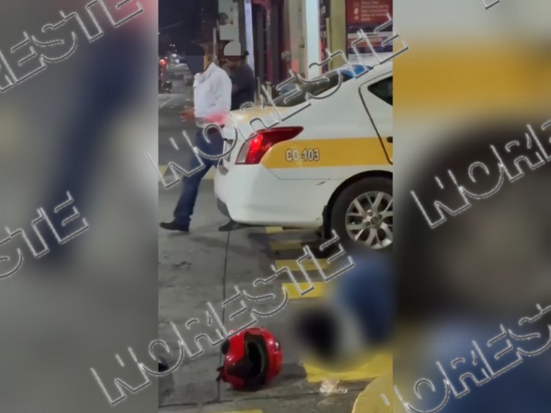 El siniestro ocurrió en la intersección de la avenida 5 con calle 7, en las inmediaciones del Parque de la Casa Quemada, donde la unidad de dos ruedas se impactó contra un taxi identificado con el número económico 103.