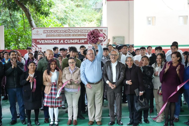 En esta ocasión, acudió al Telebachillerato Papantla, ubicado en la colonia Benito Juárez, donde realizó la entrega de la primera etapa de la barda perimetral, una obra que fortalece la seguridad de la comunidad estudiantil y del personal docente.