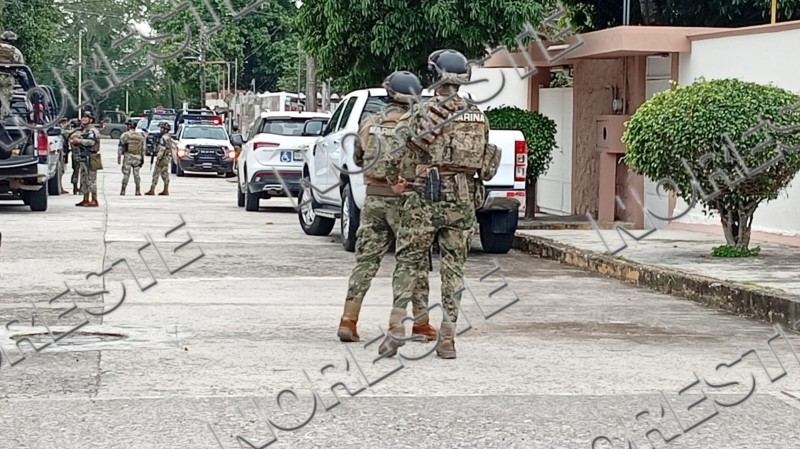 En el operativo participaron efectivos de la Secretaría de Marina, Ejército Mexicano, Policía Estatal, Policía Ministerial y Policía Municipal, quienes descendieron de los vehículos para realizar recorridos a pie en la zona, así como revisiones visuales en automóviles estacionados.