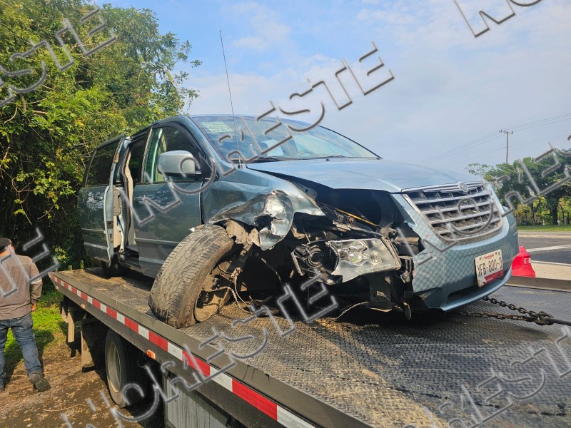 De acuerdo con los primeros reportes, en el percance se vieron involucradas una camioneta tipo vagoneta, marca Chrysler tipo Town &Country, color gris, la cual presentó severos daños en la parte frontal y en la suspensión delantera, así como un automóvil sedán color rojo, marca Toyota tipo Yaris, que resultó con el frente prácticamente destrozado tras el impacto.