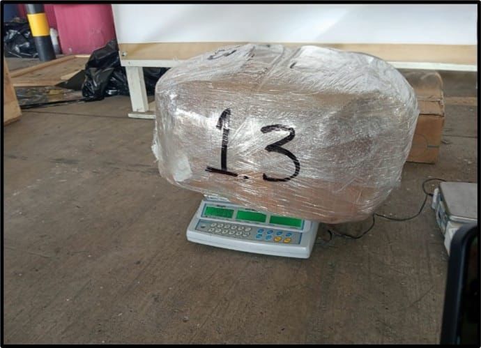 Una vez confirmado el resultado, la mercancía fue asegurada y puesta a disposición de las autoridades competentes para la integración de la carpeta de investigación correspondiente, con el fin de determinar responsabilidades.