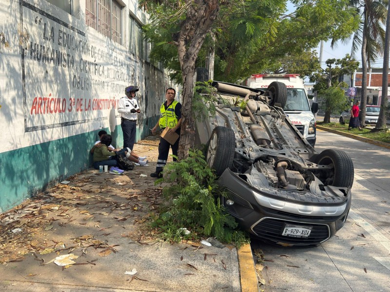 Una camioneta terminó volcada y dos personas resultaron lesionadas tras un fuerte accidente registrado la tarde de este viernes en el fraccionamiento Virginia, en el municipio de Boca del Río.