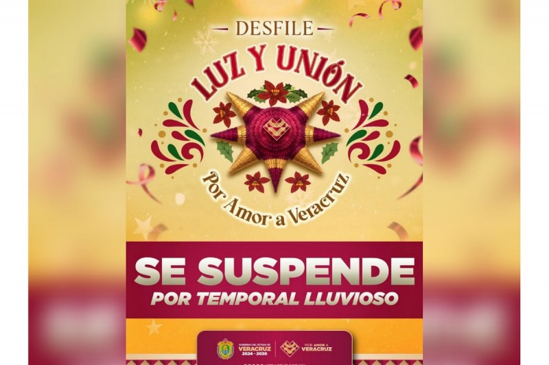 Debido al temporal lluvioso registrado en la ciudad, se suspende el desfile navideño Luz y Unión, a fin de proteger la integridad de las y los participantes, así como del público asistente. El evento será reprogramado para el Día de Reyes