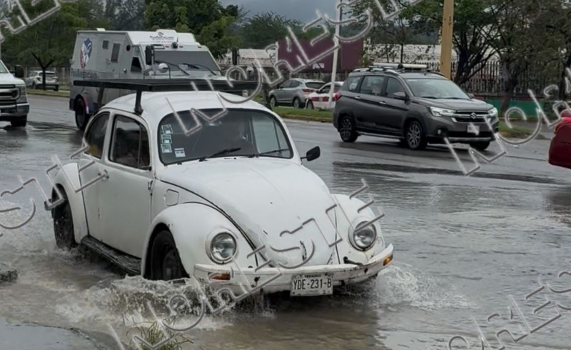 Peligro transitar sobre el boulevard Central Oriente , debido a los enormes baches que afectan el tráfico vehicular, así como en encharcamientos en diversos puntos