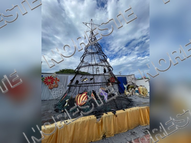 El municipio de Nautla despertó la mañana de este jueves 25 de diciembre de 2025 con una escena inesperada: el pino navideño emblemático, instalado como parte de las festividades decembrinas, fue localizado completamente incendiado.