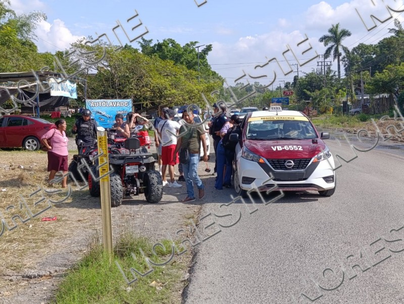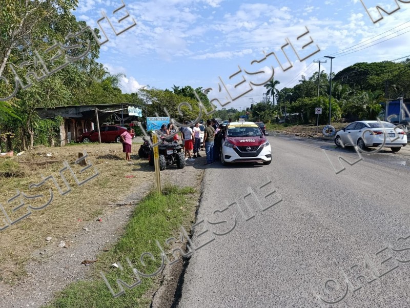 Fuentes indicaron que en este lugar una cuatrimoto impactó a un taxi, sin que se reportaran personas lesionadas. Tras el incidente se derivó una discusión entre los conductores debido a diferencias en la valuación de los daños.