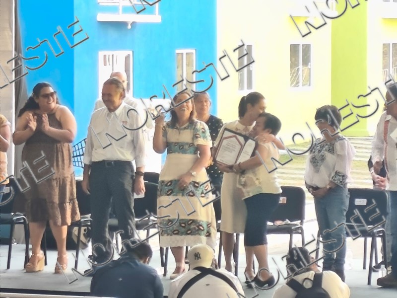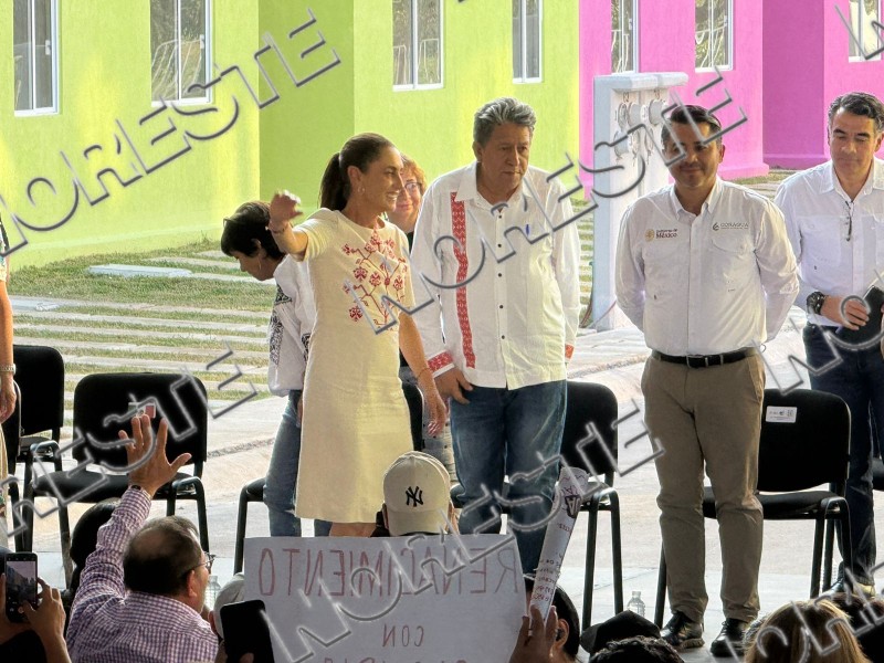En el fraccionamiento ahora nombrado Bosques de Río Medio, la mandataria presidió un evento en el que derechohabientes recibieron las llaves de sus nuevas casas, bajo el programa de impulso a la vivienda del Gobierno Federal.