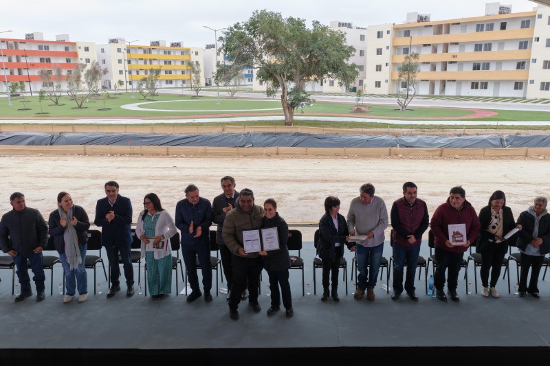 La secretaria de Desarrollo Agrario, Territorial y Urbano, Edna Elena Vega Rangel, detalló que en Tamaulipas, la meta sexenal es superar las 84 mil viviendas: 60 mil viviendas del Infonavit, 20 mil de la Comisión Nacional de Vivienda (Conavi) y más de 4 mil del Fondo de la Vivienda del Instituto de Seguridad y Servicios Sociales de los Trabajadores del Estado (Fovissste), construidas a través de una inversión de 50 mil millones de pesos (mdp), generando 252 mil empleos directos y 378 mil indirectos en beneficio de 302 mil tamaulipecos. Explicó que del total de viviendas, 45 mil ya están contratadas. Además de la entrega de llaves de viviendas nuevas, en Reynosa también se entregaron 349 constancias de liquidación del Fovissste y 100 escrituras del Instituto Nacional del Suelo Sustentable (INSUS).