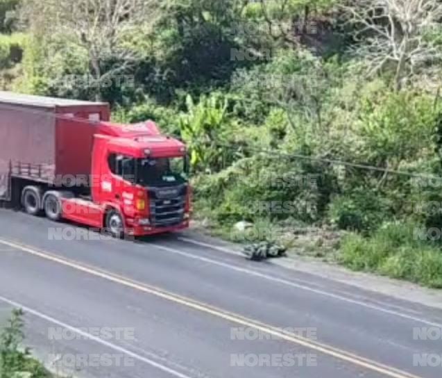Tras el impacto, el tráiler terminó invadiendo el carril contrario, mientras que la motocicleta quedó completamente destrozada a varios metros de distancia, lo que evidenció la fuerza del percance.