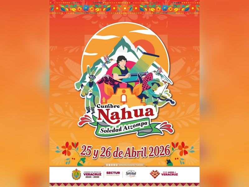 La Secretaría de Turismo (SECTUR) invita a la Cumbre Nahua 2026, que se realizará los días 25 y 26 de abril en la localidad de Las Porfiadas, municipio de Soledad Atzompa; un encuentro que enaltece la riqueza cultural y las tradiciones de los pueblos originarios de la región.