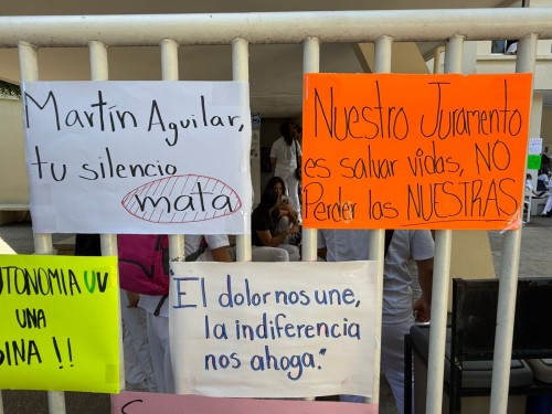 Alumnos de medicina Veracruz realizan paro de brazos caídos