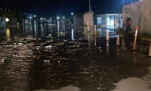 Rompen tapa de registro en Lomas de Río Medio para sacar varillas y venderlas