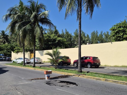 Socavón sorprende a taxista en la avenida Allende Norte en Veracruz