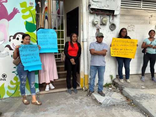 Padres de familia se manifiestan en kinder de Boca del Río para exigir restitución de maestra