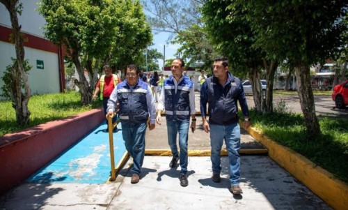 Alcalde JM Unánue supervisa la construcción de dos canchas de fútbol en el CBTIS 190