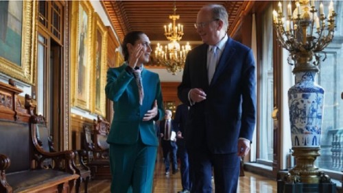 Sheinbaum se reúne en Palacio Nacional con Larry Fink, presidente de empresas como BlackRock y Adebayo Ogunlesi