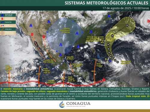 Chubascos y lluvias puntuales fuertes acompañadas con descargas eléctricas en el norte, noreste y oriente de México