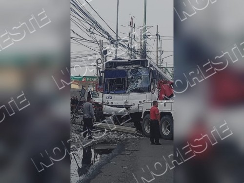 Autobús se impacta contra un poste de luz en la colonia Tultetlac en Ecatepec
