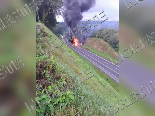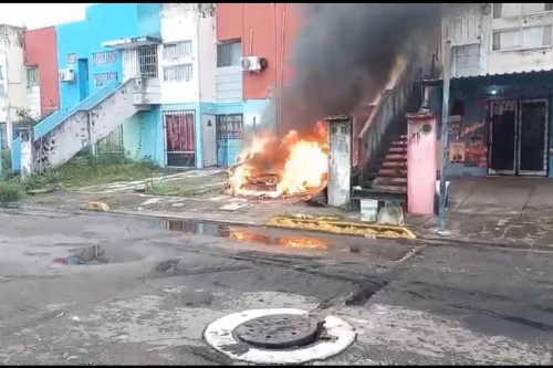 Fuego consume auto en Colinas de Santa Fe; bomberos controlan el siniestro