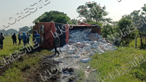 Vuelca camión con carga de harina en la autopista Córdoba–Veracruz; el chofer resultó lesionado