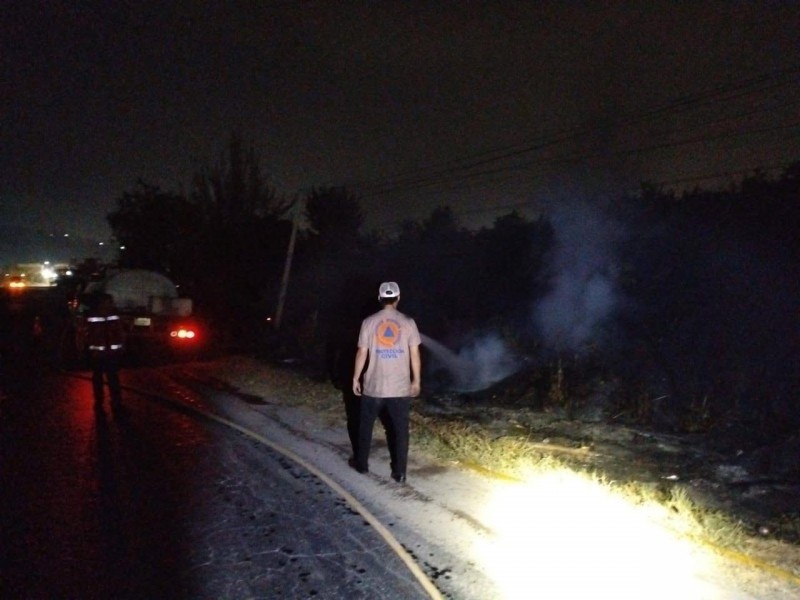 El hecho se registró la madrugada de este viernes, donde habitantes solicitaron el apoyo de Bomberos, quienes acudieron de inmediato con la ayuda de otros brigadistas, mismos que unieron esfuerzos evitando la propagación de las llamas.