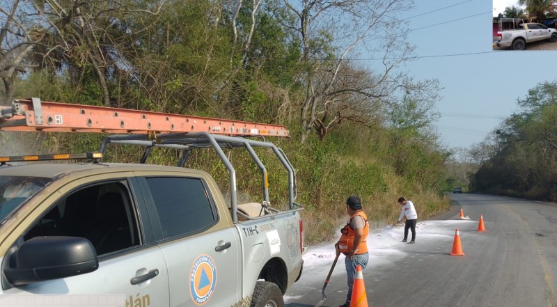 Agregan que, afortunadamente se logró intervenir de manera rápida en este incidente en la carretera federal, evitando un riesgo de salud principalmente entre las familias cercanas a la comunidad las Puentes de Tihuatlán.