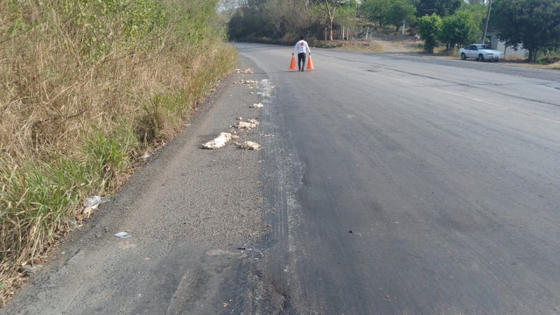 Ante los fétidos olores que se generaban sobre la carretera federal Tihuatlán a la altura de las Puentes, habitantes de esta comunidad y otras aledañas solicitaron la intervención de Protección Civil por la presencia de vísceras de res, las cuales se encontraban esparcidas por la carpeta asfáltica.