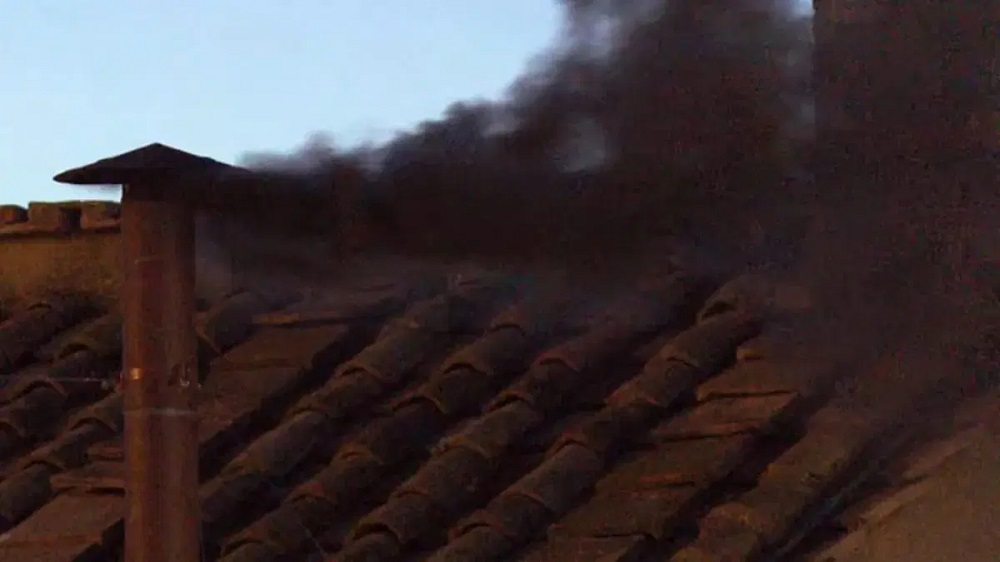 La fumata negra salió por la chimenea instalada en la Capilla Sixtina en punto de las 21:00 h local (13:00 h tiempo del Centro de México).