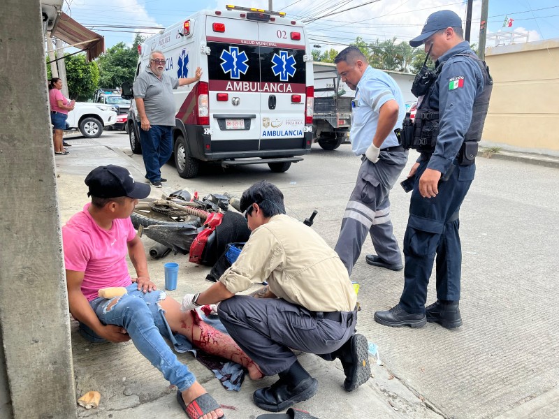 Paramédicos municipales y de Cruz Ámbar brindaron atención al lesionado, quien fue trasladado a una clínica para su valoración especializada. En tanto, el conductor de la camioneta, de aproximadamente 50 a 55 años, entró en crisis nerviosa mientras trataba de comunicarse con su seguro.