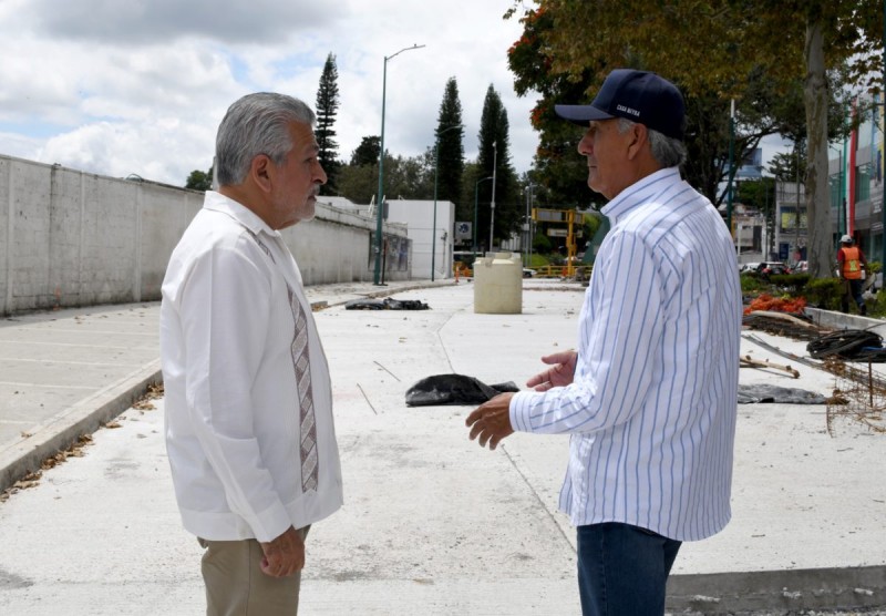 Durante un recorrido mediante el que constató el progreso que registran las labores constructivas, los responsables de la obra expusieron que en este tramo se pavimentan con concreto hidráulico mil 600 metros cuadrados de superficie.