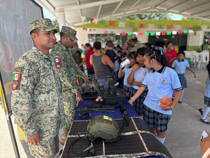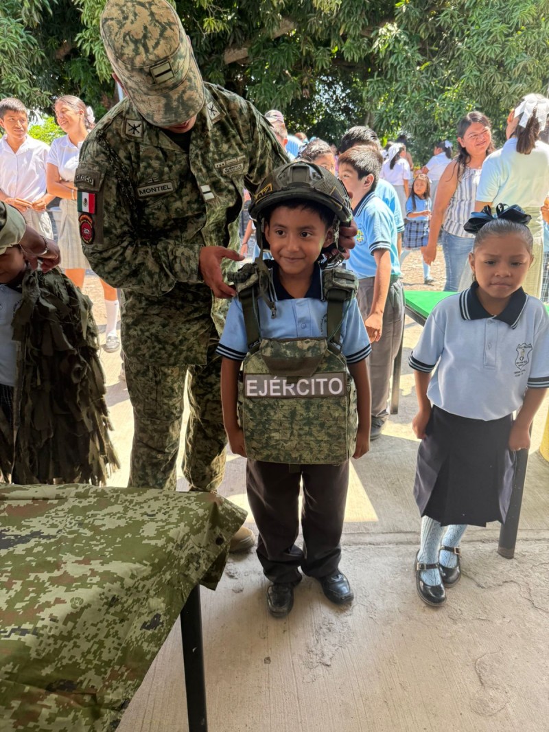 Durante la jornada, los participantes tuvieron la oportunidad de conocer de cerca el equipo, material y actividades que desarrolla el Ejército Mexicano, generando un espacio de convivencia y aprendizaje.