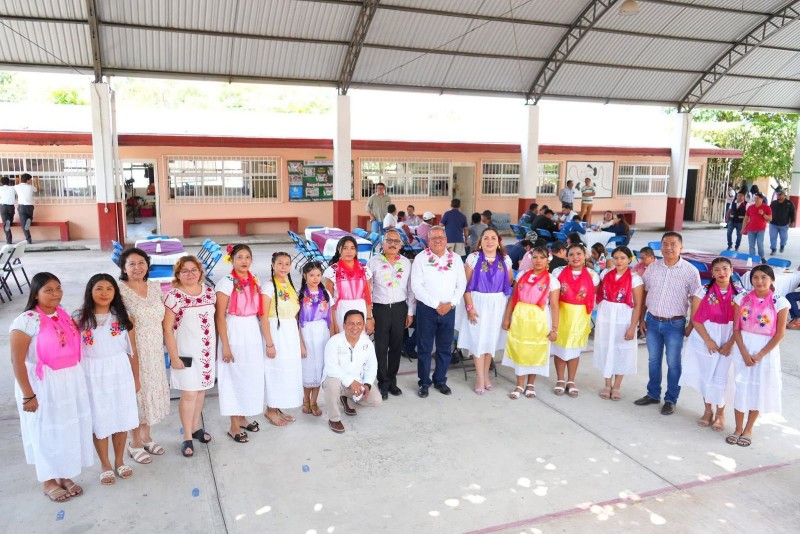 Durante el acto de entrega, la comunidad escolar, encabezada por el profesor Isidoro Martínez, recibió con entusiasmo al presidente municipal, Dr. Celestino Pino Guevara, acompañado de regidores.