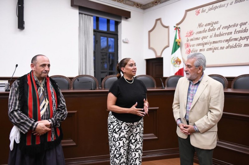 El alcalde Alberto Islas Reyes recibió en la Sala de Cabildo a integrantes de la Academia de Danzas Cruz del Sur de los Antiguos, de Argentina, quienes participan en el Festival Multicultural Xalapa 2025, evento que reúne a artistas nacionales e internacionales con el propósito de fomentar el intercambio cultural y fortalecer los lazos entre comunidades.