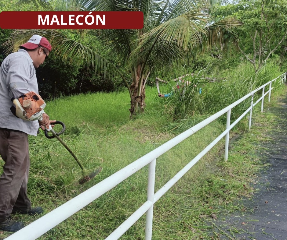 Cuadrillas de Parques y Jardines están atendiendo áreas verdes del Libramiento López Mateos, bulevar Maples Arce (carretera a la playa) y la ribera del río, a lo largo de tramos del nuevo malecón.