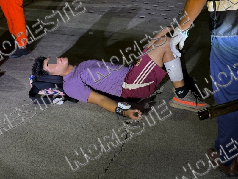 Paramédicos de Cruz Ámbar arribaron al lugar para valorar al lesionado, quien afortunadamente no presentó heridas de gravedad, aunque manifestó dolor en la zona genital a causa del impacto contra el tanque de su motocicleta.