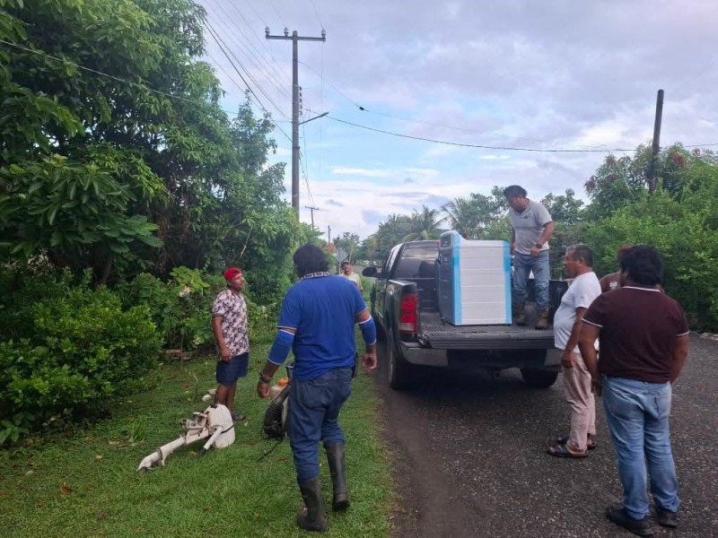 Elementos de Protección Civil municipal se mantienen en intensa actividad, brindando auxilio a familias de la comunidad de Coyol Norte que resultaron afectahdas por el desbordamiento del río Cazones, derivado de las fuertes lluvias que se han registrado en la región.