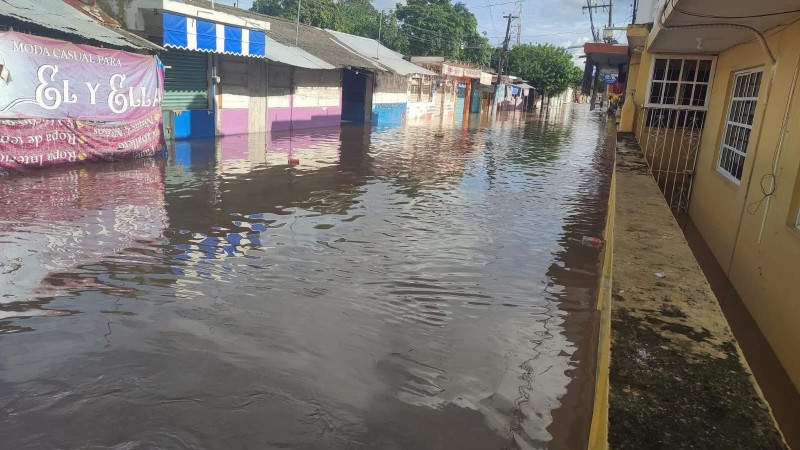 La explanada del Palacio Municipal, el parque central y el mercado municipal —ubicado en el barrio Zona Centro, Alto Lucero y El Paraíso— se encuentran completamente cubiertos de agua, dificultando el tránsito y las actividades comerciales.