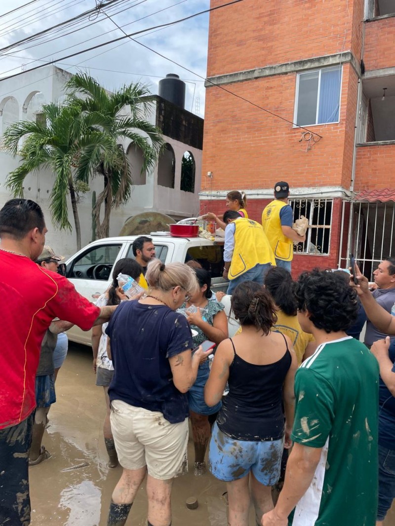 Las brigadas se desplegaron en zonas afectadas, logrando llevar alimentos calientes a los damnificados de la colonia Gaviotas, una de las áreas que resintieron los mayores estragos por el incremento en el nivel del río.
