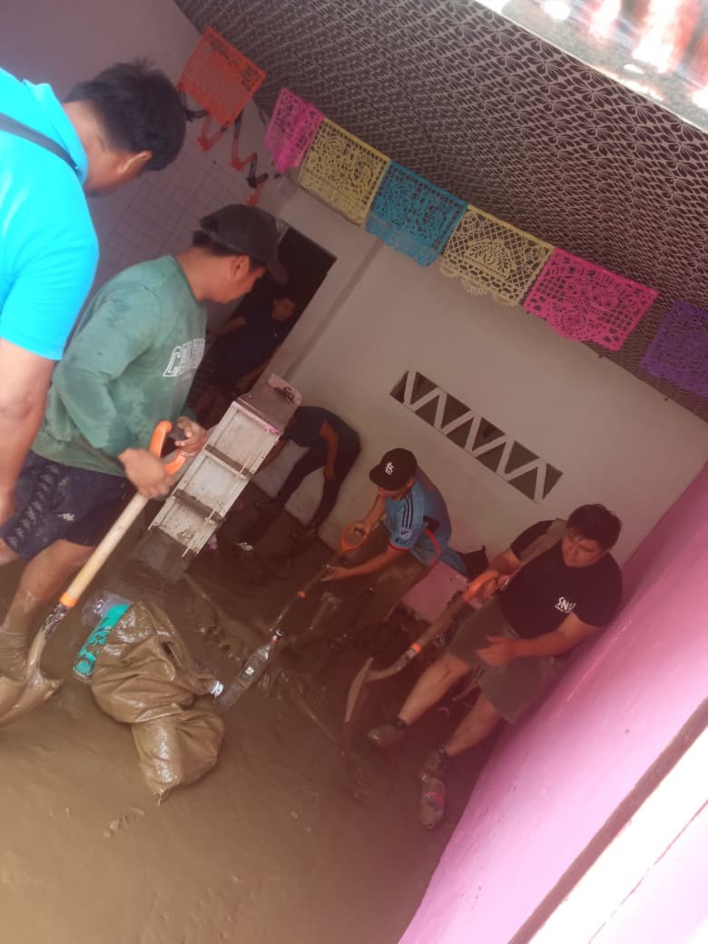 Olvera Torres señaló que acudieron al lugar para colaborar en las labores de limpieza, como muestra de solidaridad con las familias que resultaron afectadas tras la fuerte inundación provocada por el desbordamiento del río Cazones.