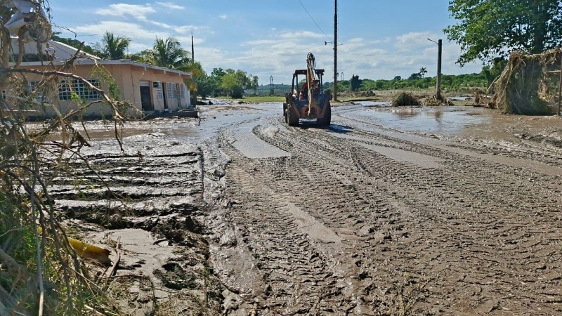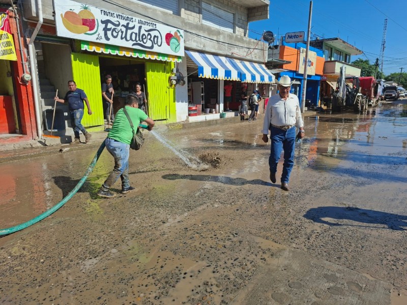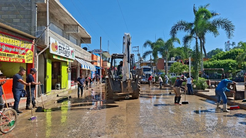 Con apoyo de una máquina retroexcavadora y pipas con agua, también se están lavando las principales calles y domicilios del centro de la cabecera municipal. Estas acciones buscan evitar problemas sanitarios y contribuir a una pronta recuperación de la zona.